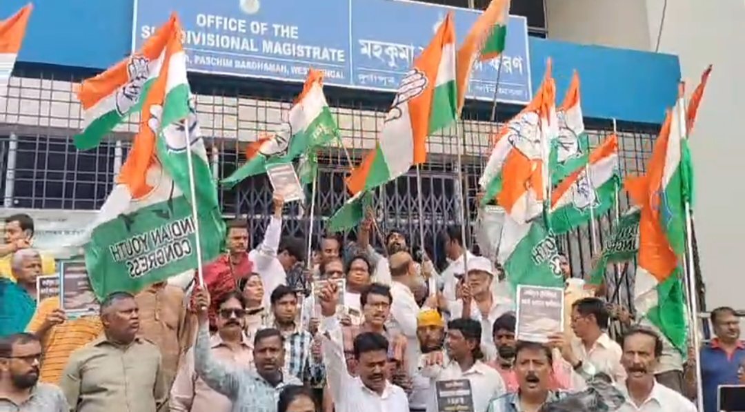 নিজস্ব প্রতিনিধি,দূর্গাপুর: ভোটার তালিকা থেকে যোগ্য ভোটারদের নাম বাদ দেওয়ার অভিযোগে বৃহস্পতিবার উত্তাল হয়ে উঠল মহকুমা শাসকের (SDO) দপ্তর চত্বর। জেলা কংগ্রেসের এই বিক্ষোভ কর্মসূচিকে কেন্দ্র করে ব্যাপক উত্তেজনা ছড়ায় এলাকায়। এক পর্যায়ে উত্তেজিত কংগ্রেস কর্মীরা এসডিও অফিসের প্রধান গেট ভেঙে ভেতরে ঢুকে পড়েন এবং জোরালো স্লোগান ও প্রতিবাদ শুরু করেন।